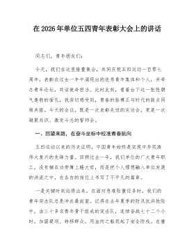 在2026年“五四”青年节表彰大会上的讲话