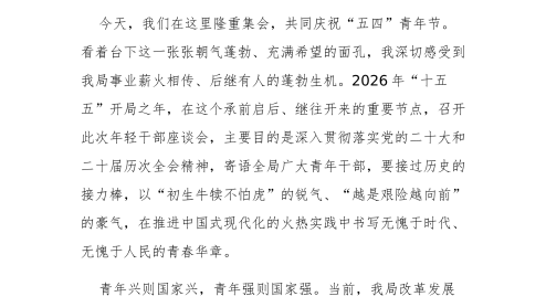 在2026年“五四”青年节座谈会上的发言材料