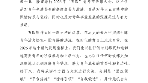 五四青年节发言材料:赓续“五四”奋斗精神,厚植青年干部担当