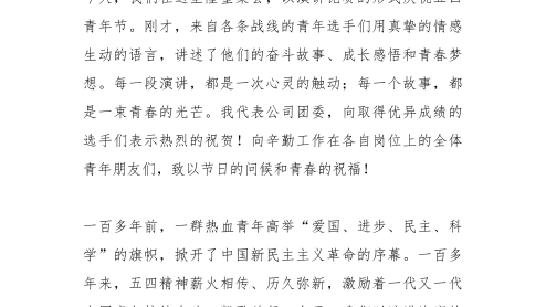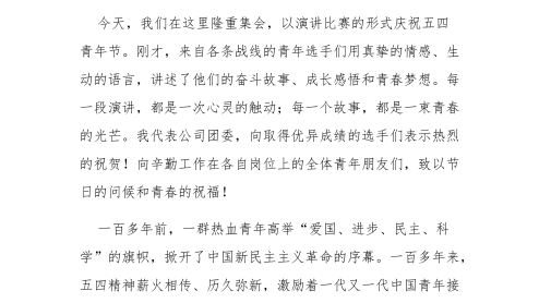 五四青年节讲话:汇聚青春动能接力企业发展