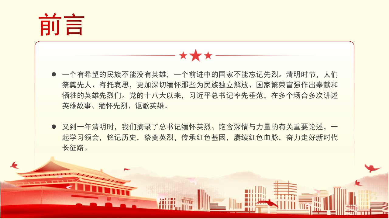 标题:清明节学重要讲话 缅怀先烈致敬英雄 PPT