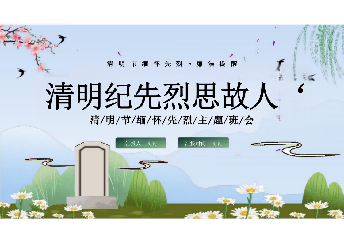 标题:清明节廉洁清明缅怀先烈主题班课PPT课件