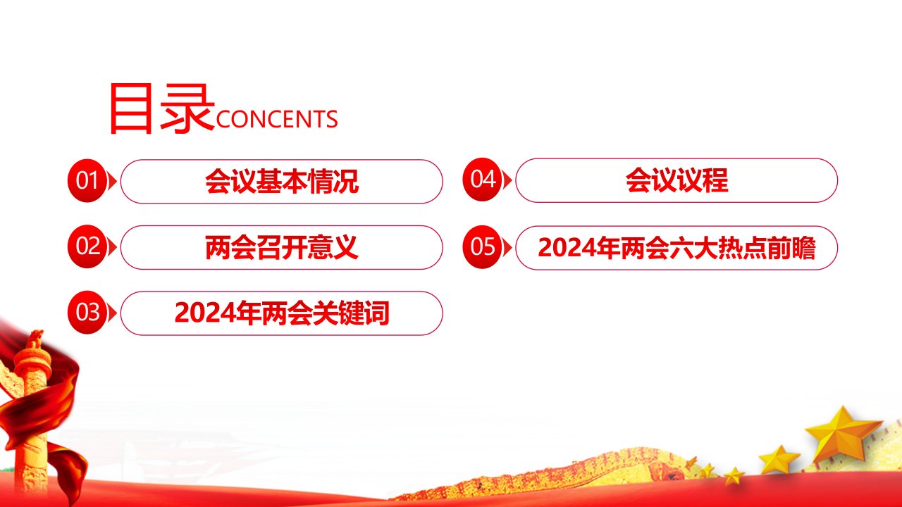 标题:全面聚焦2024年全国两会精神解读ppt课件(两套供参考可删减)