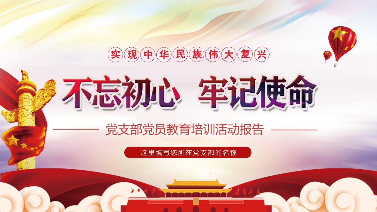 不忘初心牢记使命党支部党员教育培训报告PPT课件