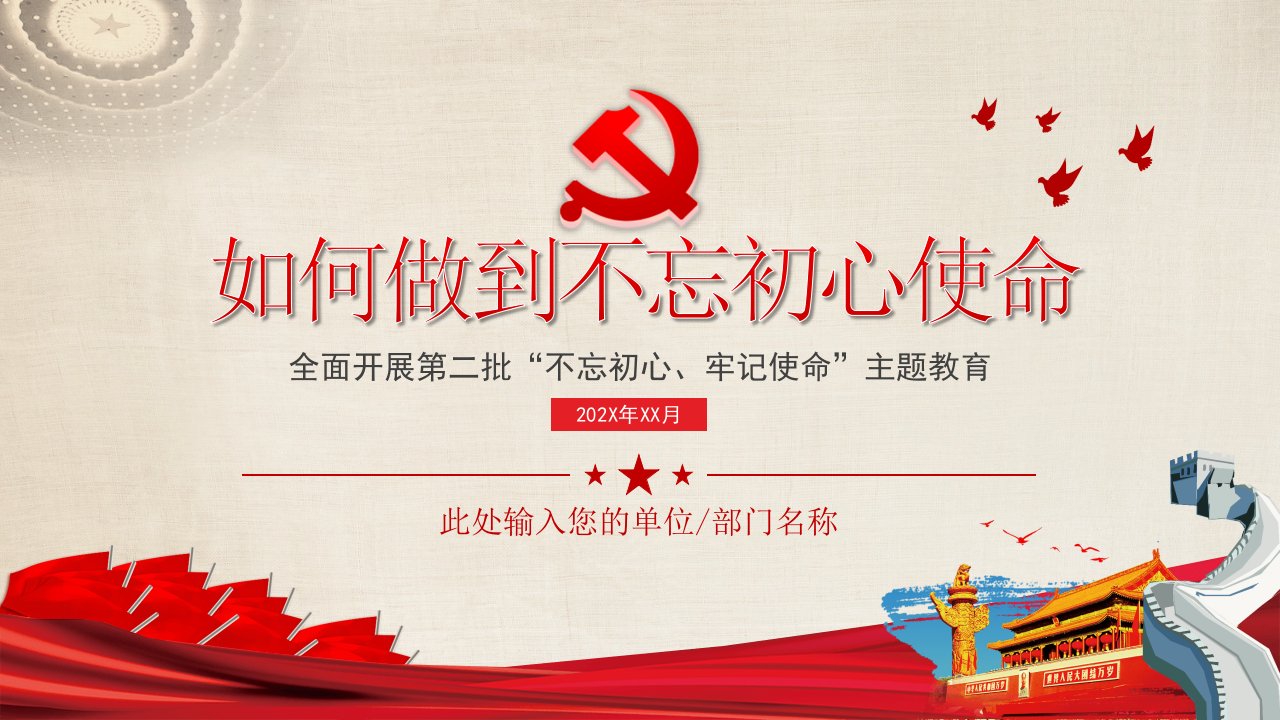标题:不忘初心牢记使命党课PPT行业通用PPT模板