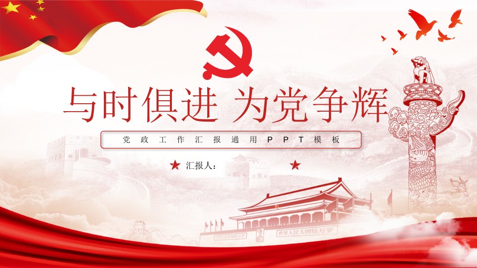 标题:与时俱进 为党争先——简洁大气党建汇报通用ppt模板