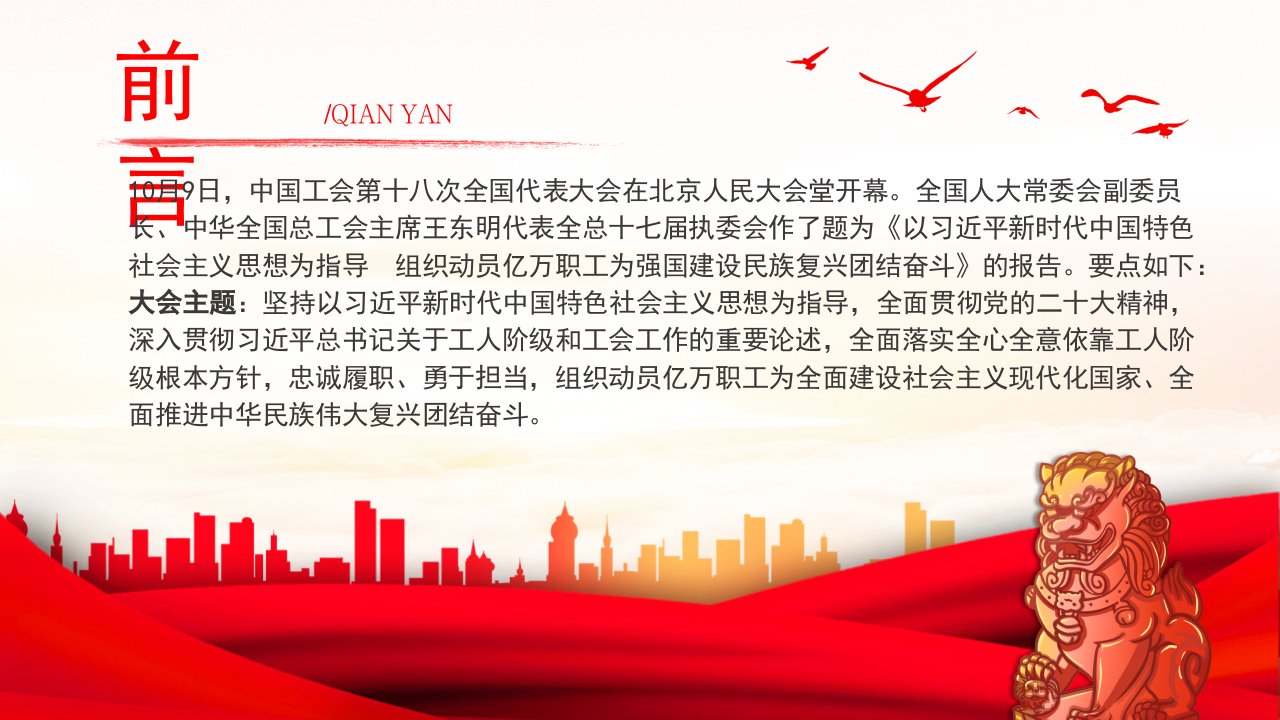 标题:中国工会十八大报告PPT(20231122)