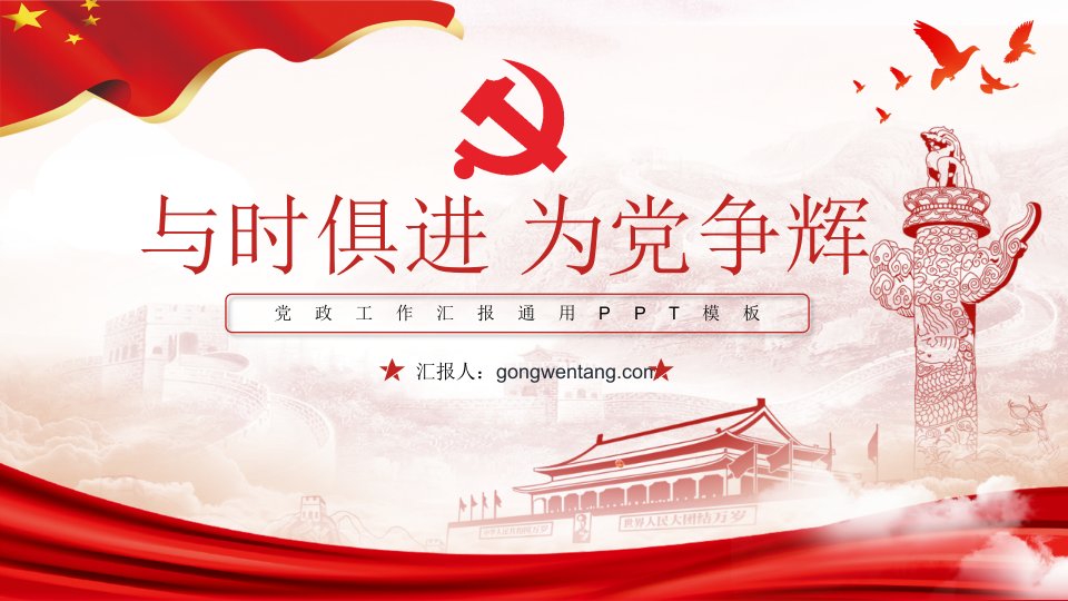 标题:党政工作汇报通用PPT模板