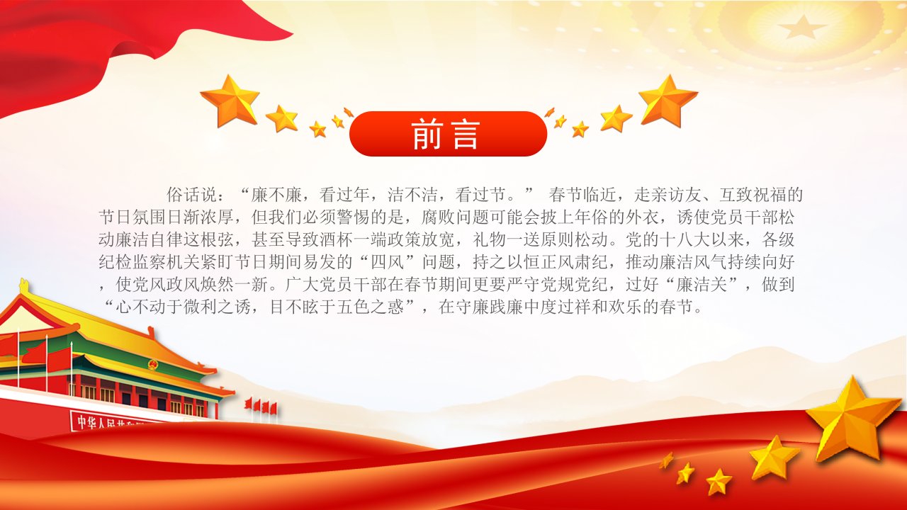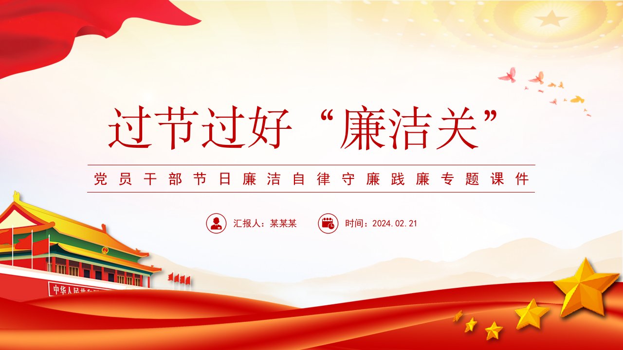 标题:2024过节过好“廉洁关”PPT大气精美党员干部廉洁党课课件