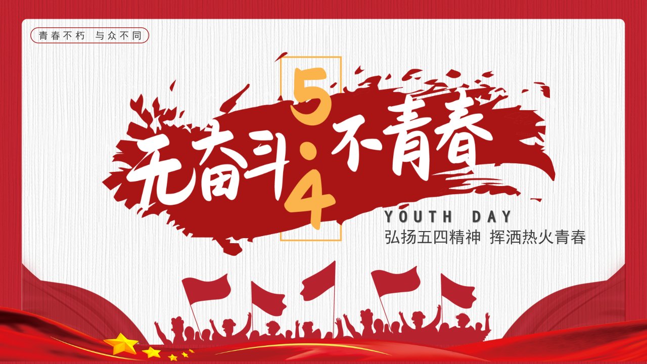 标题:2023年五四青年节ppt模板:弘扬五四精神挥洒热火青春