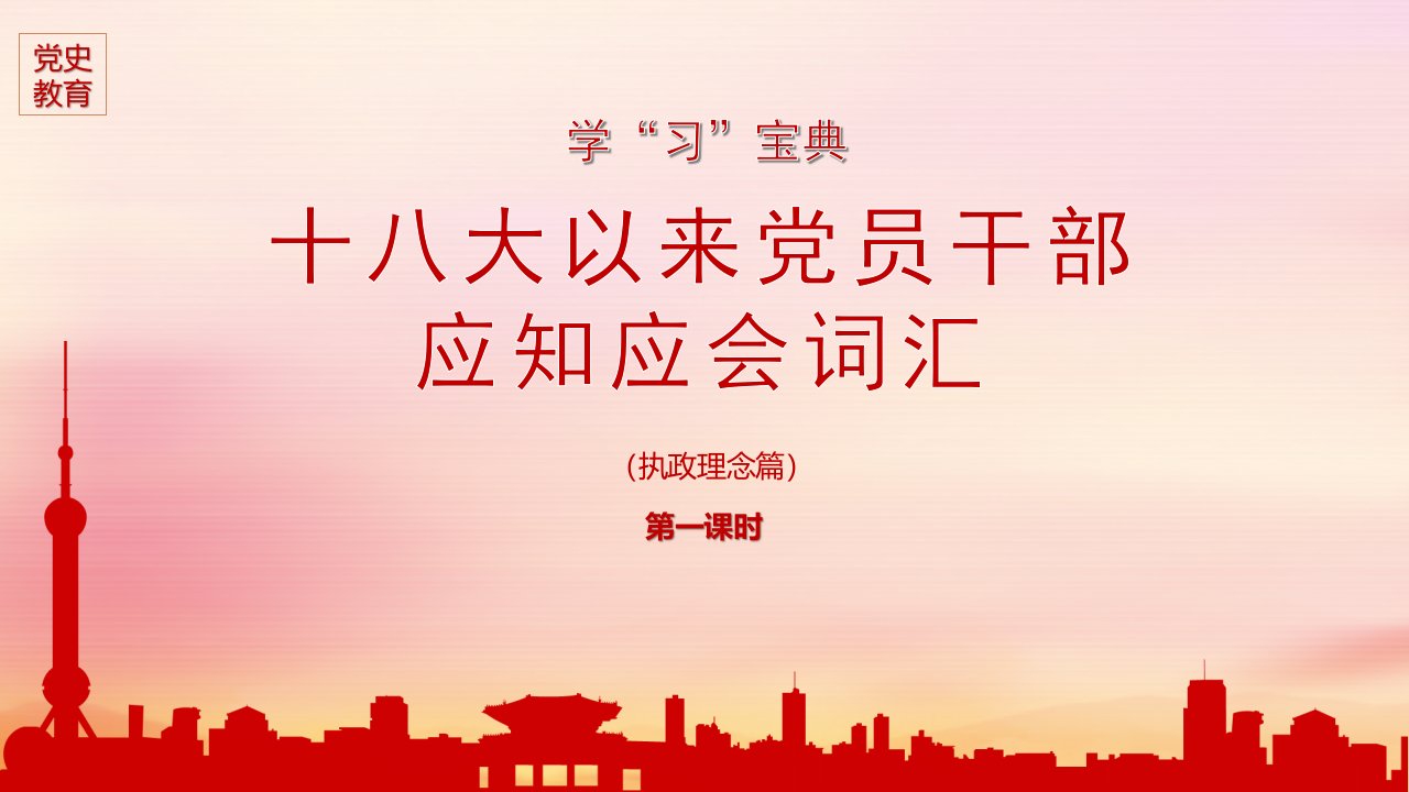 标题:党课PPT:党的十八大以来党员干部应知应会词汇(执政理念篇)