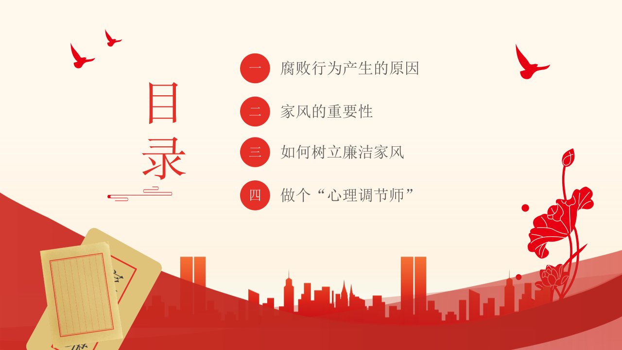 标题:红色大气简约家庭助廉廉洁文化进家庭清廉治家PPT
