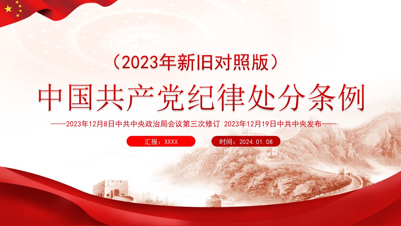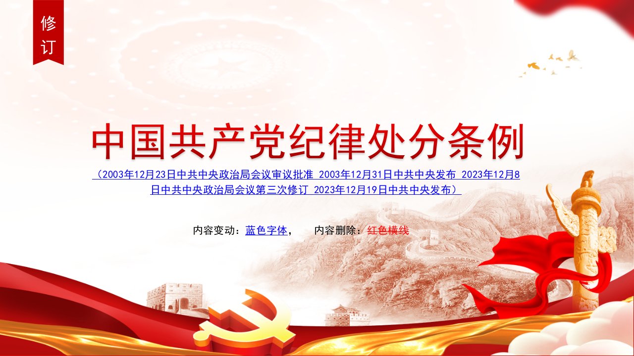 标题:党课:《中国共产党纪律处分条例》2023年新旧对照版PPT