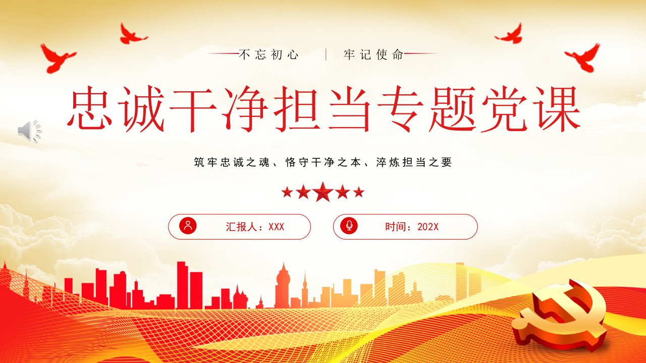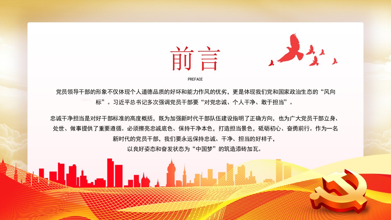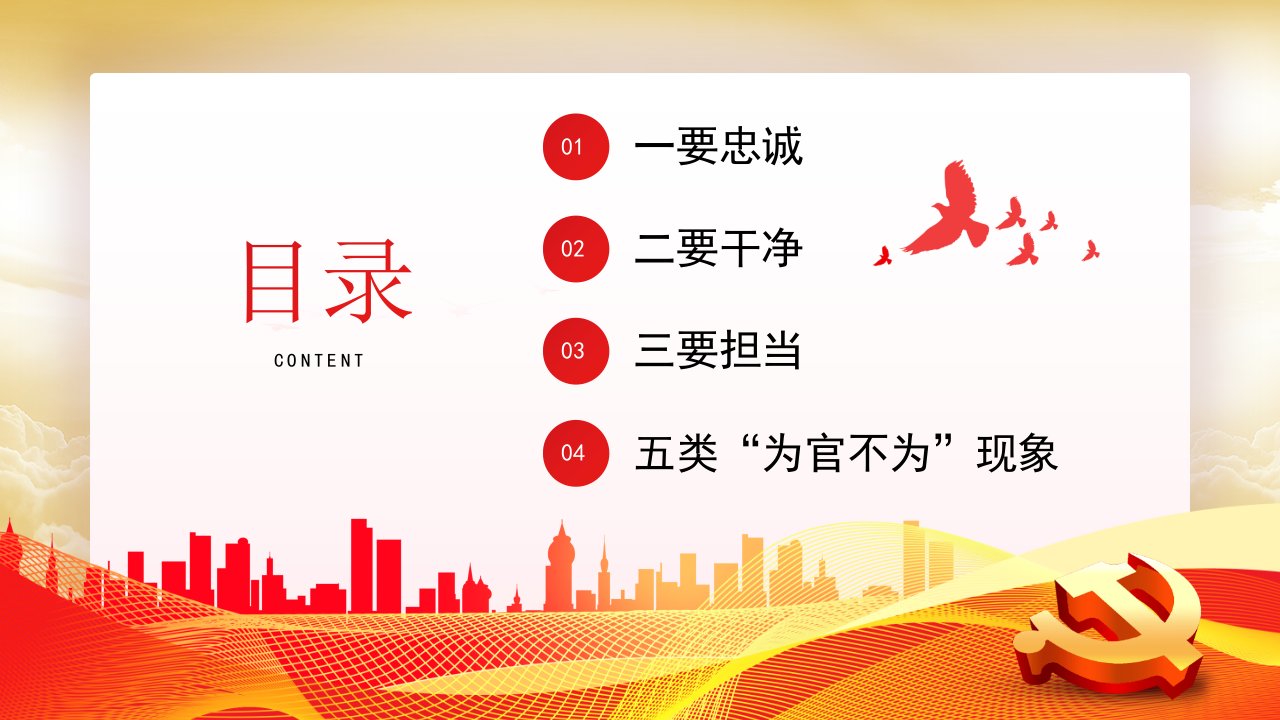 标题:忠诚干净担当廉政建设党课PPT模板