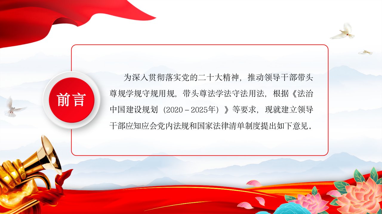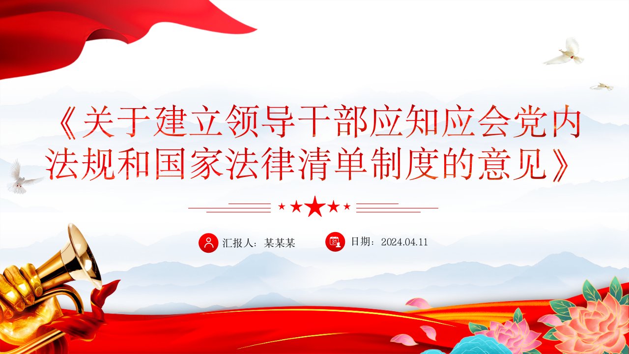 标题:2024《关于建立领导干部应知应会党内法规和国家法律清单制度的意见》PPT党纪学习教育党课