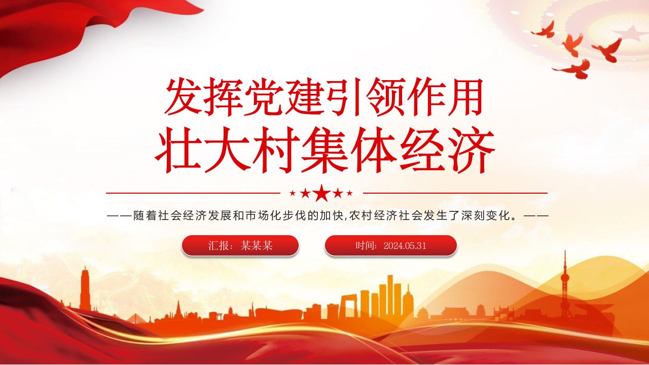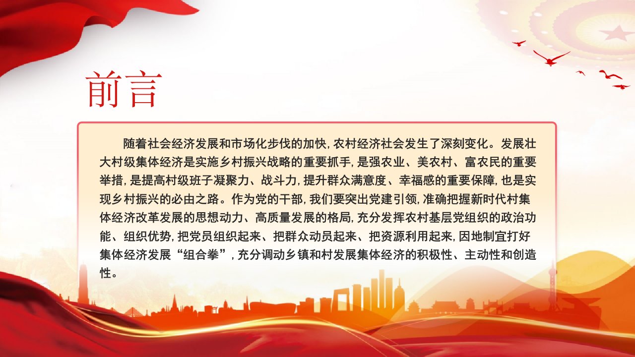 标题:乡村振兴党课:发挥党建引领作用壮大村集体经济PPT课件