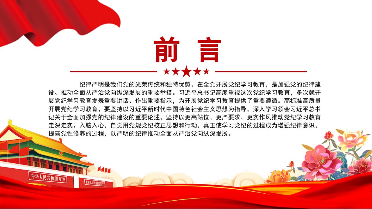 标题:全面加强党的纪律建设:全党开展党纪学习教育工作课件PPT