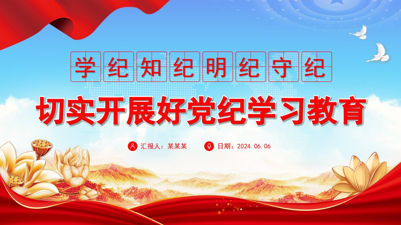标题:切实开展好党纪学习教育——学纪知纪明纪守纪PPT课件模板
