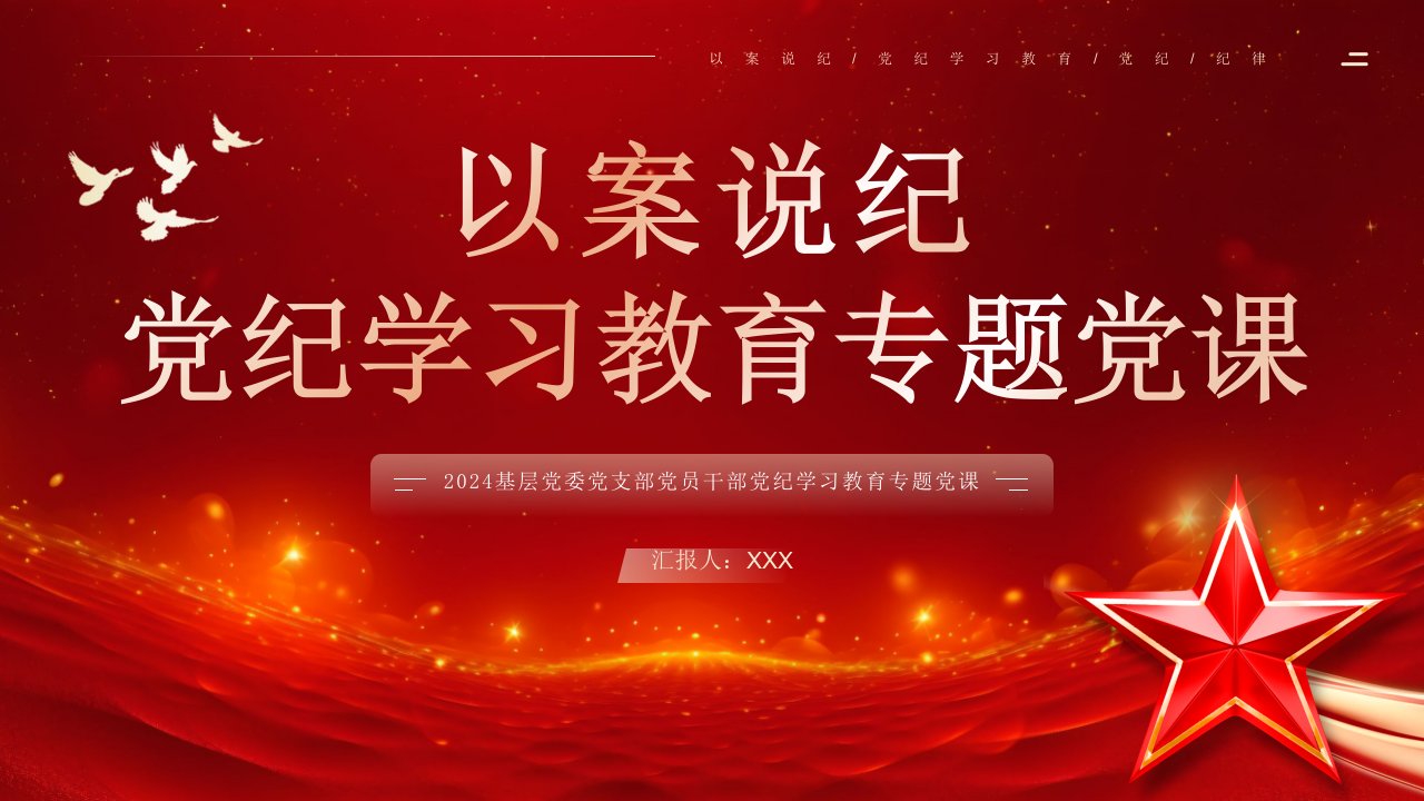 标题:2024基层党委党支部党员干部党纪学习教育专题党课:以案说纪党纪学习教育专题党课PPT