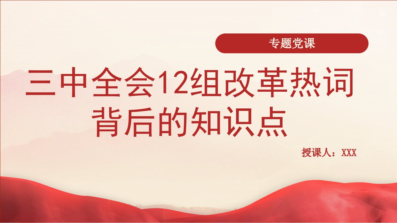 标题:三中全会12组改革热词背后的知识点学习党课PPT