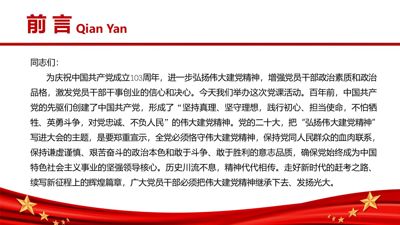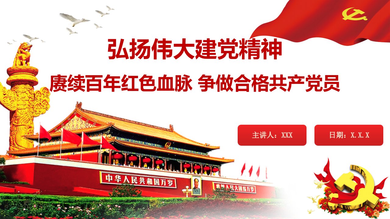 标题:2024年“七一”专题党课学习ppt课件:弘扬伟大建党精神赓续百年红色血脉 争做合格共产党员