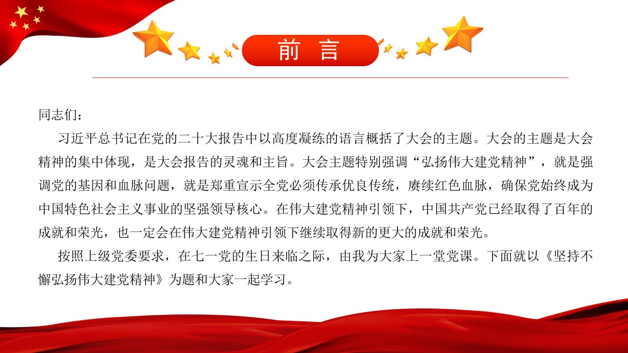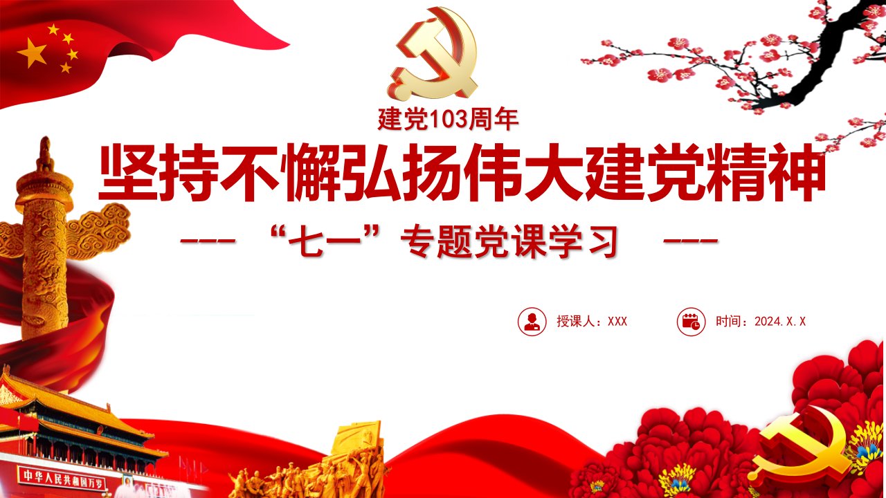 标题:2024年“七一”专题党课学习ppt课件:坚持不懈弘扬伟大建党精神