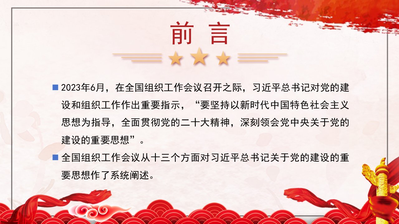 标题:深入学习领会关于党的建设的重要思想 党的全面领导 全面从严治党 党建、心得体会模板(PPT)
