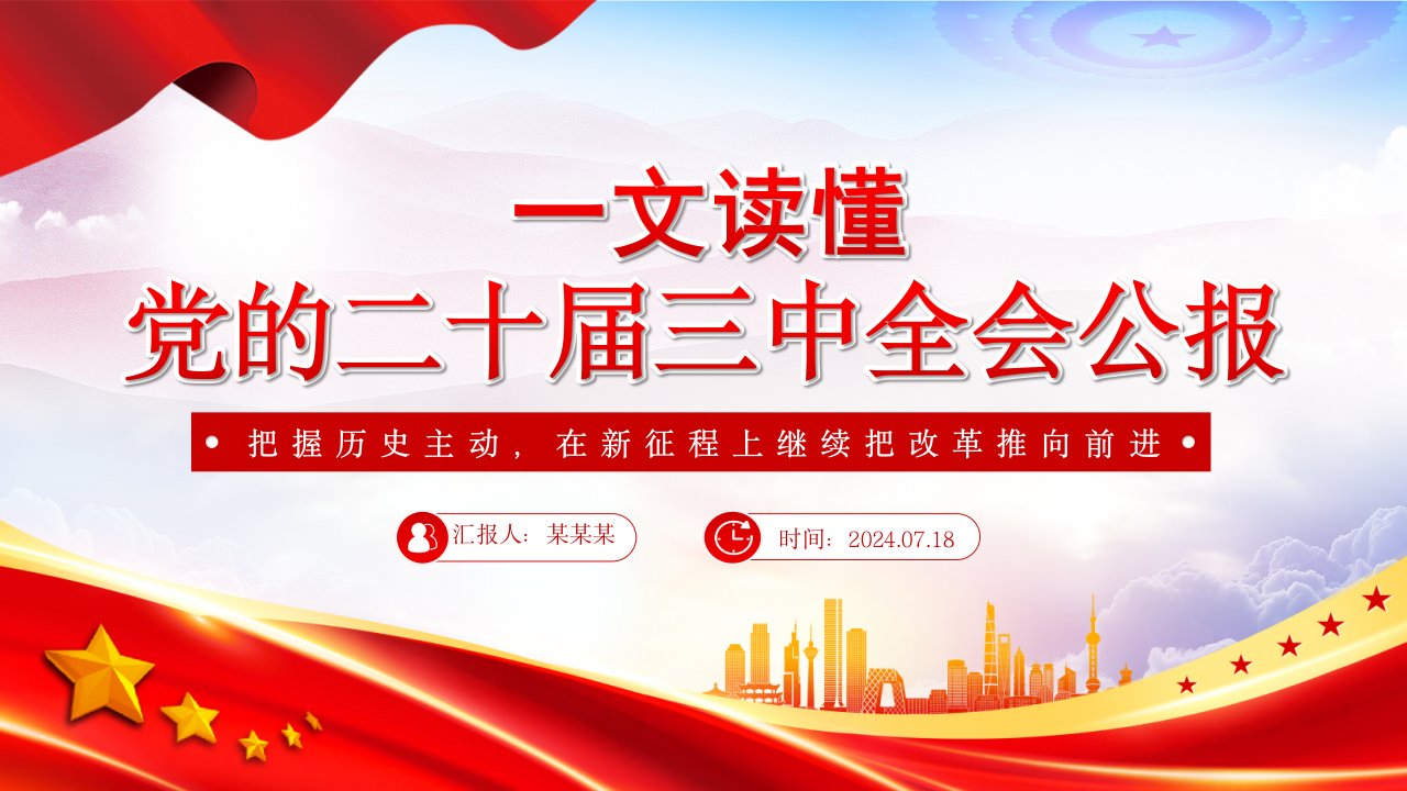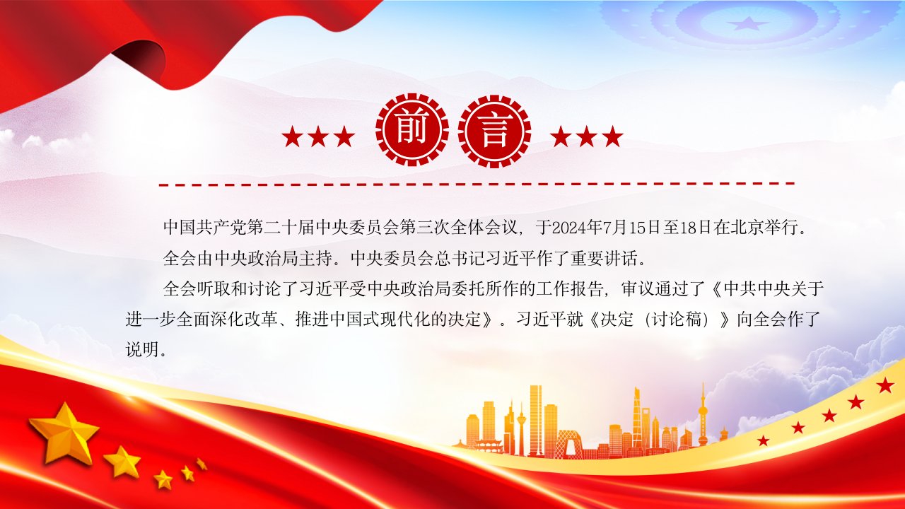 标题:2024党的二十届三中全会公报要点速览PPT三中全会精神微党课