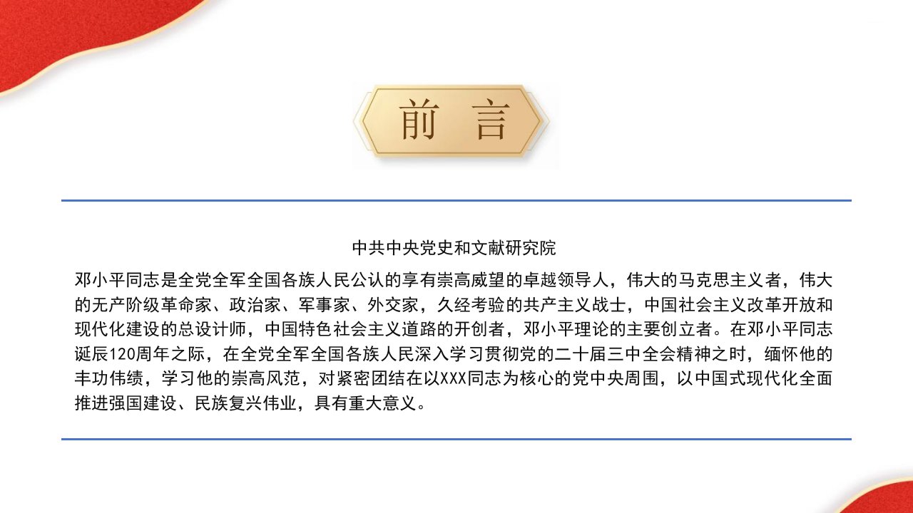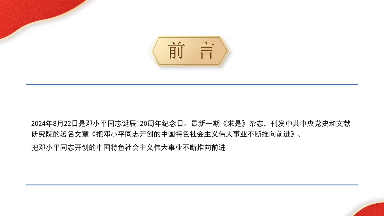 标题:把邓小平同志开创的中国特色社会主义伟大事业不断推向前进党课PPT