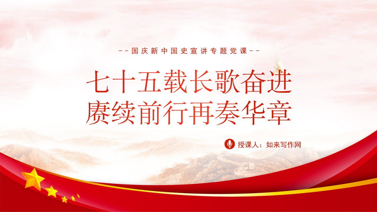 标题:党课文稿+PPT:国庆节新中国史宣讲75年伟大成就