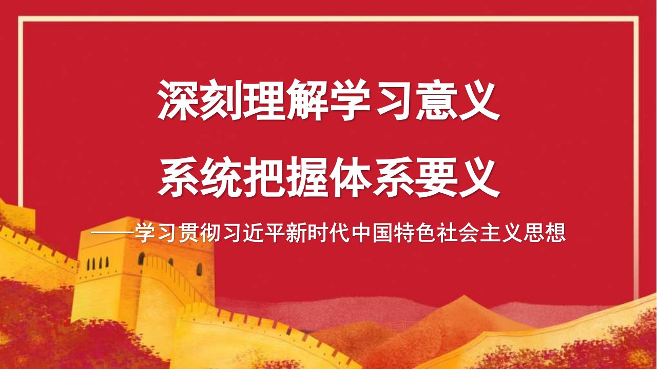 标题:深刻理解学习意义 系统把握体系要义——学习贯彻新时代中国特色社会主义思想PPT