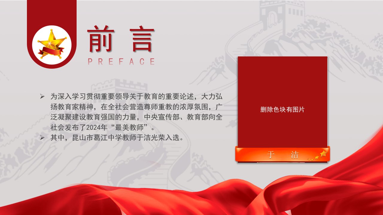 标题:弘扬教育家精神学习2024年最美教师于洁的故事PPT