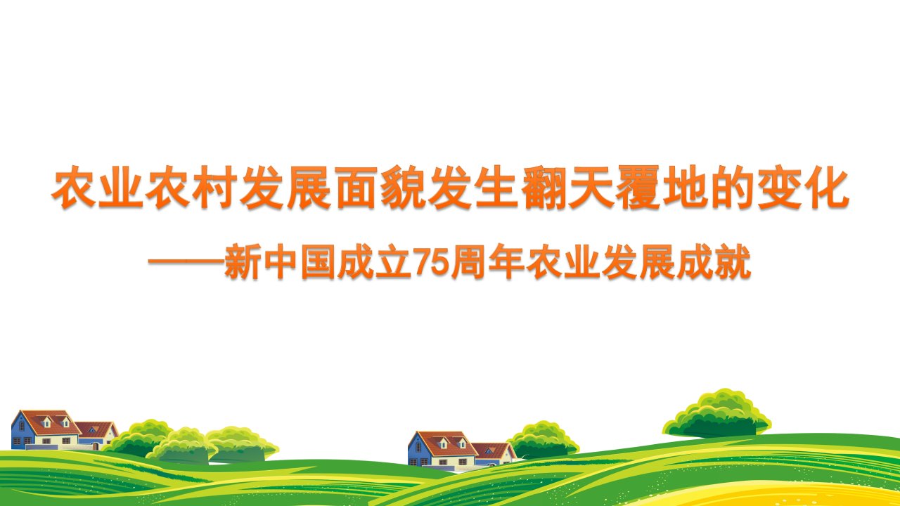 标题:党课讲稿+PPT:农业农村发展面貌发生翻天覆地的变化——新中国成立75周年农业发展成就