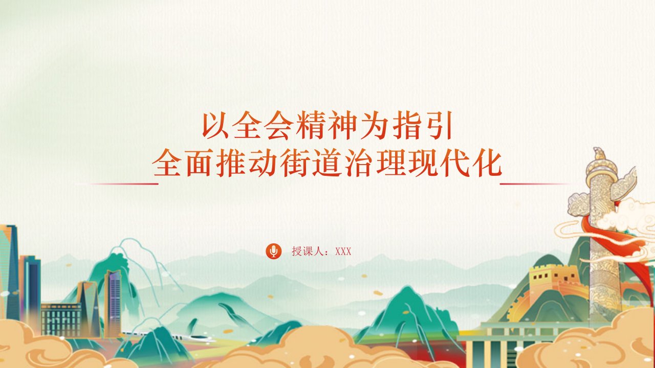 标题:党课PPT+讲稿:以全会精神为指引全面推动街道治理现代化