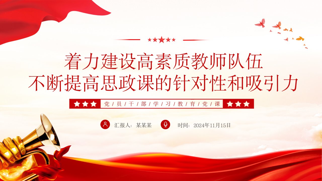 标题:党员干部学习思政课PPT 讲稿:着力建设高素质教师队伍,不断提高思政课的针对性和吸引力
