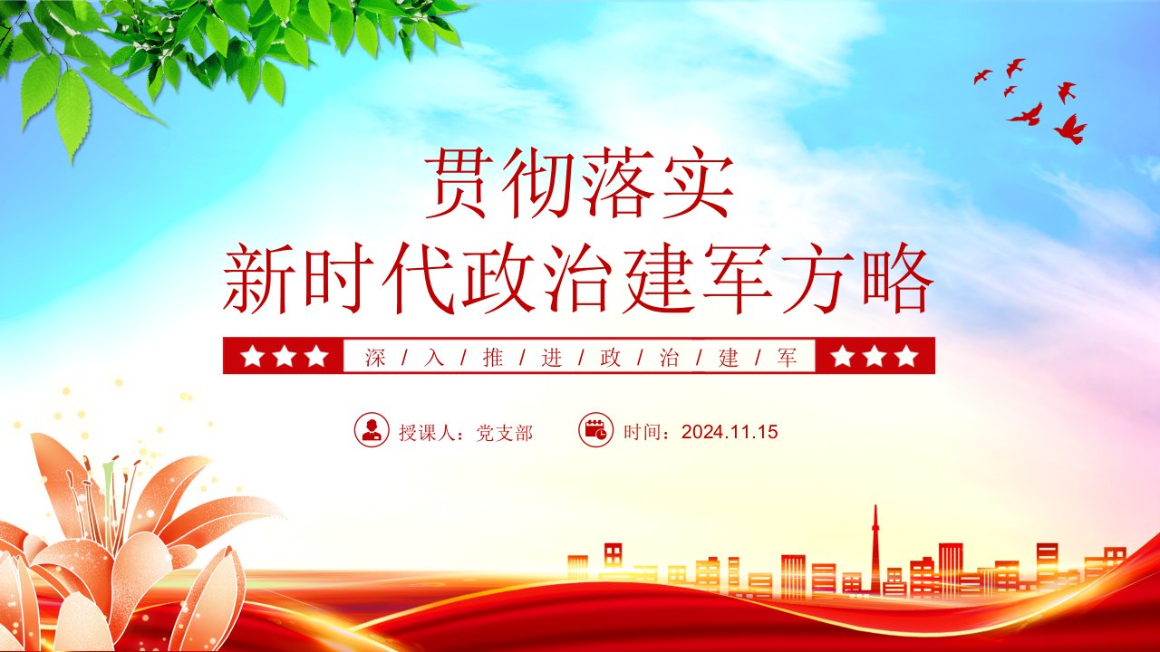 标题:学习二十届三中全会深入推进政治建军党课PPT课件:全面准确领会新时代政治建军方略