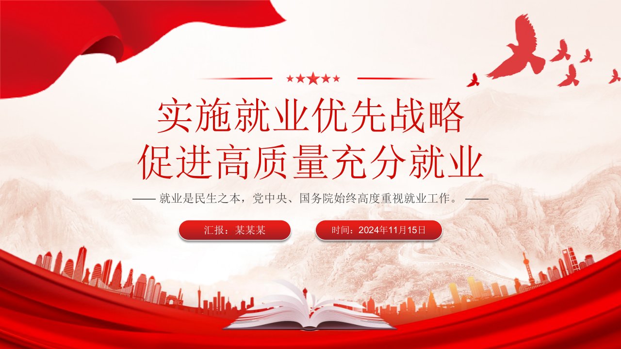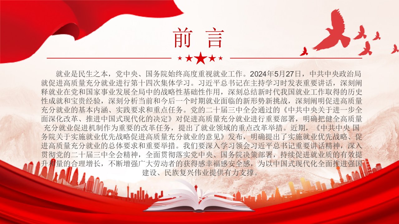 标题:党员干部学习二十届三中全会党课(PPT 讲稿):关于实施就业优先战略促进高质量充分就业的意见