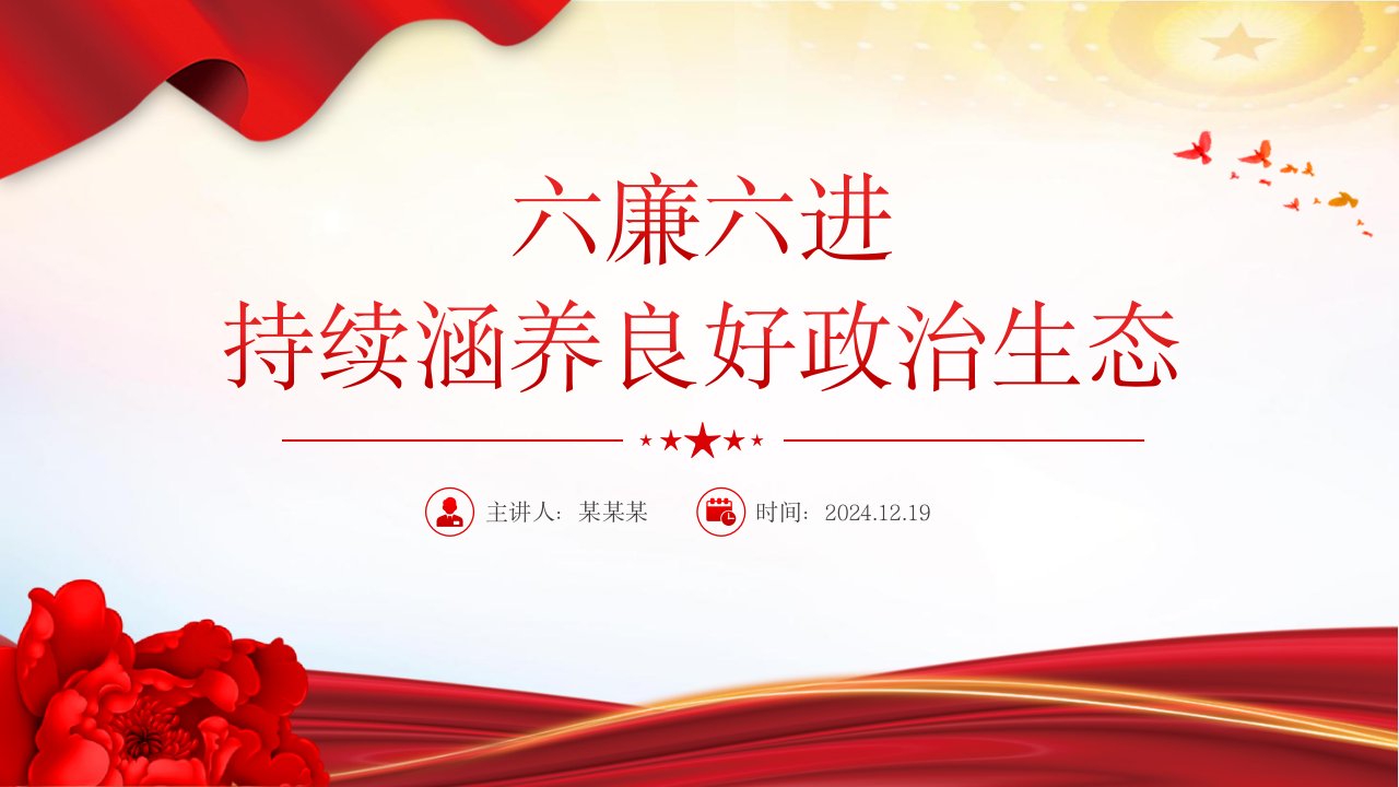 标题:2025廉洁微党课(PPT 讲稿):六廉六进持续涵养良好政治生态