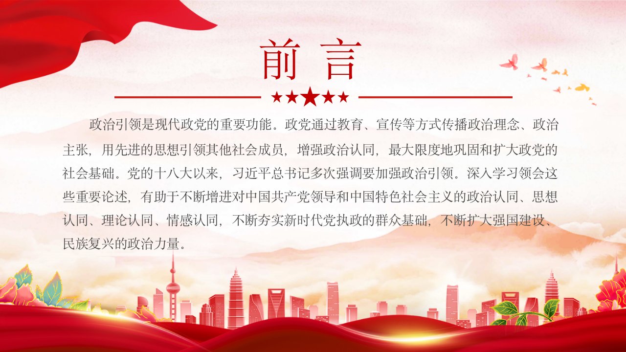 标题:2025学习总书记重要论述党课(PPT 讲稿):加强政治引领
