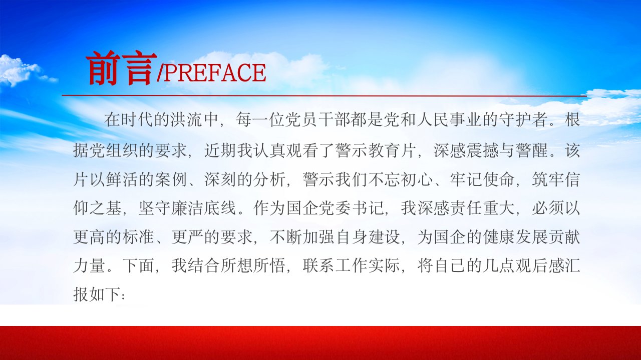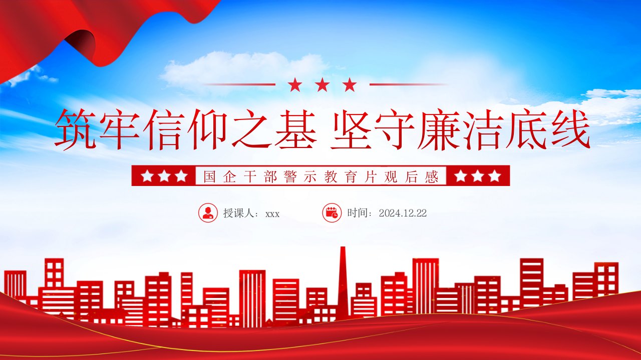 标题:国企干部警示教育片观后感模板(PPT 讲稿):筑牢信仰之基坚守廉洁底线