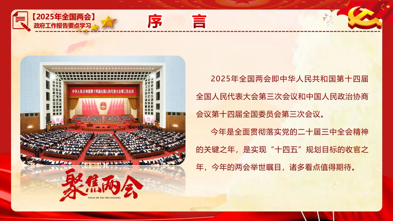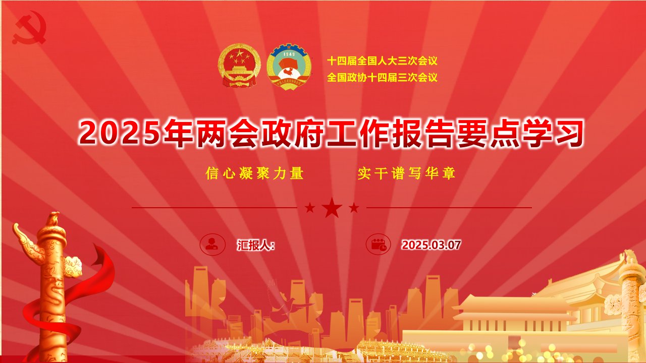 标题:PPT:2025年“两会”政府工作报告要点传达学习讲稿范文