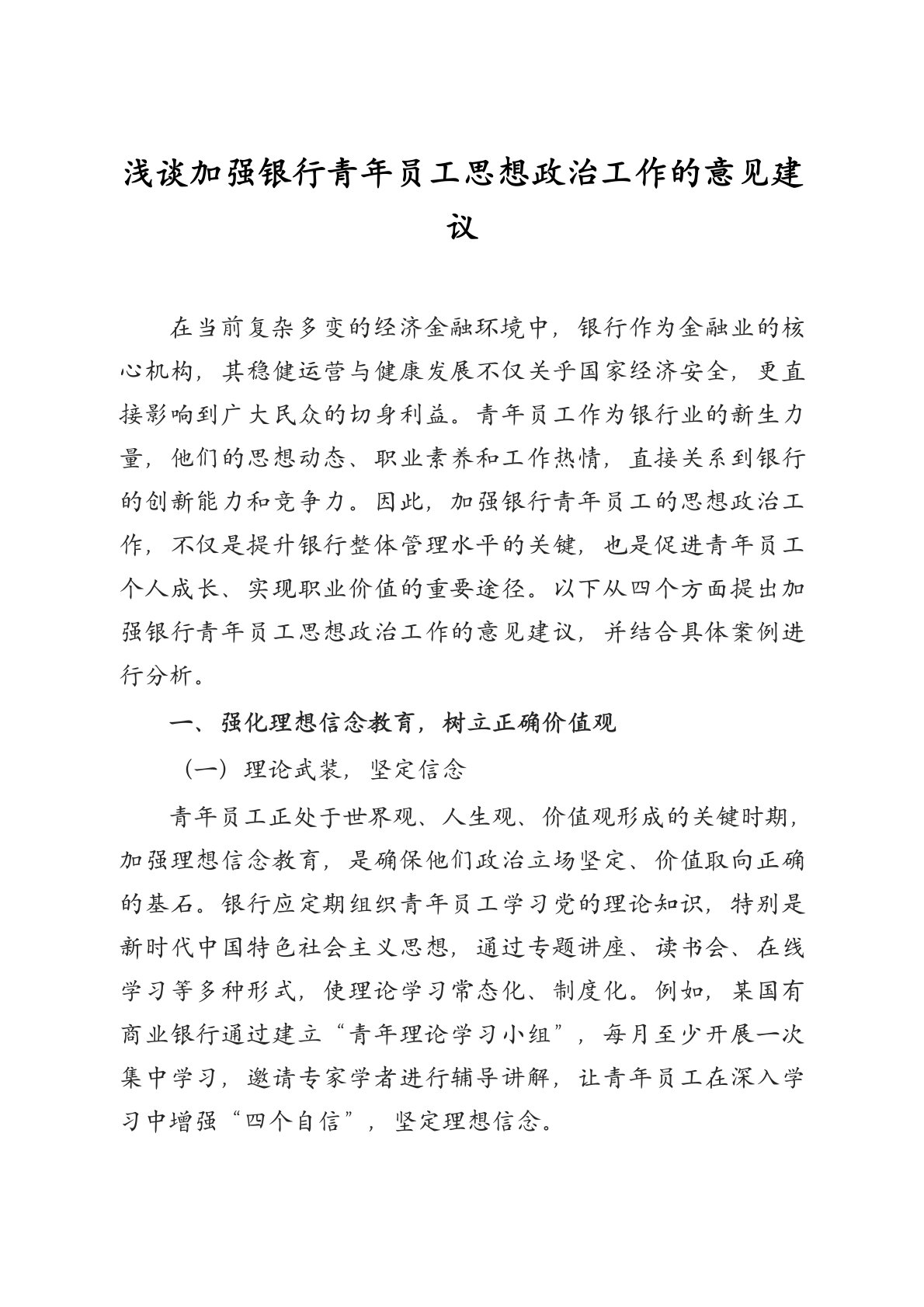 浅谈加强银行青年员工思想政治工作的意见建议