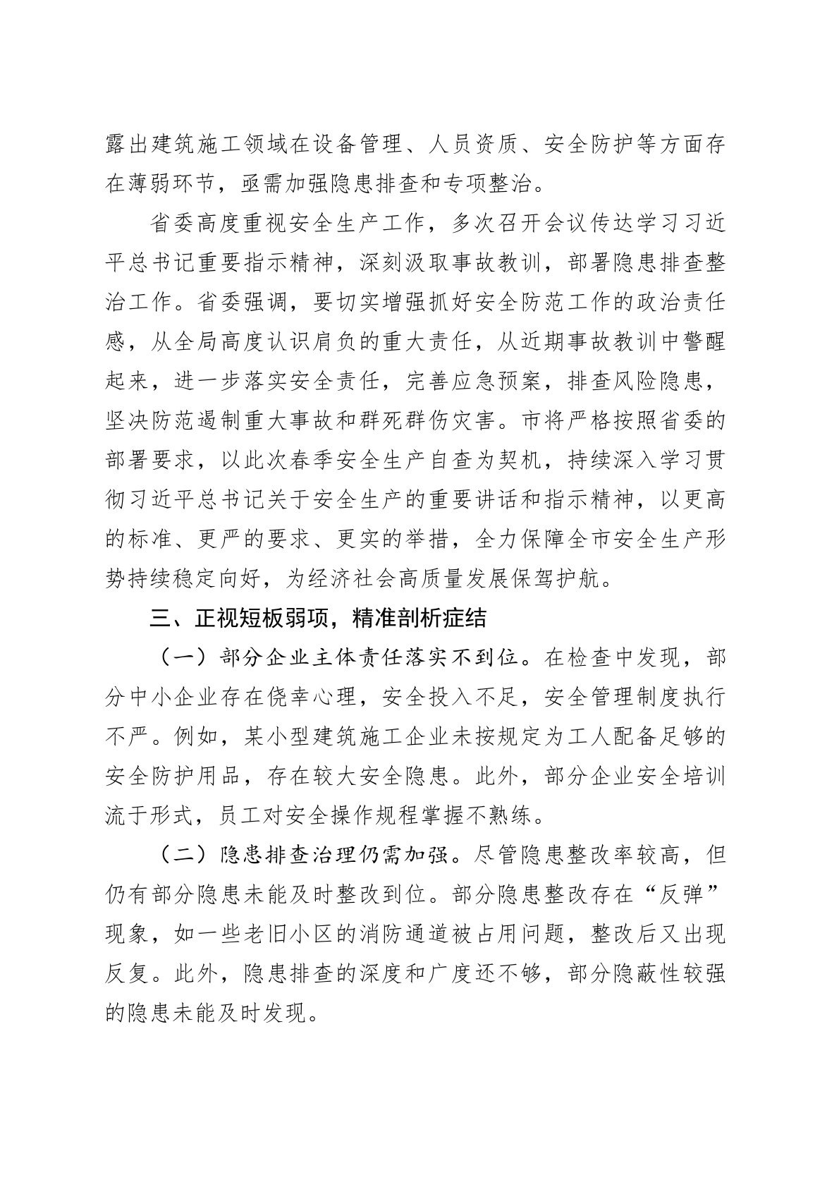 2025年市春季安全生产自查报告