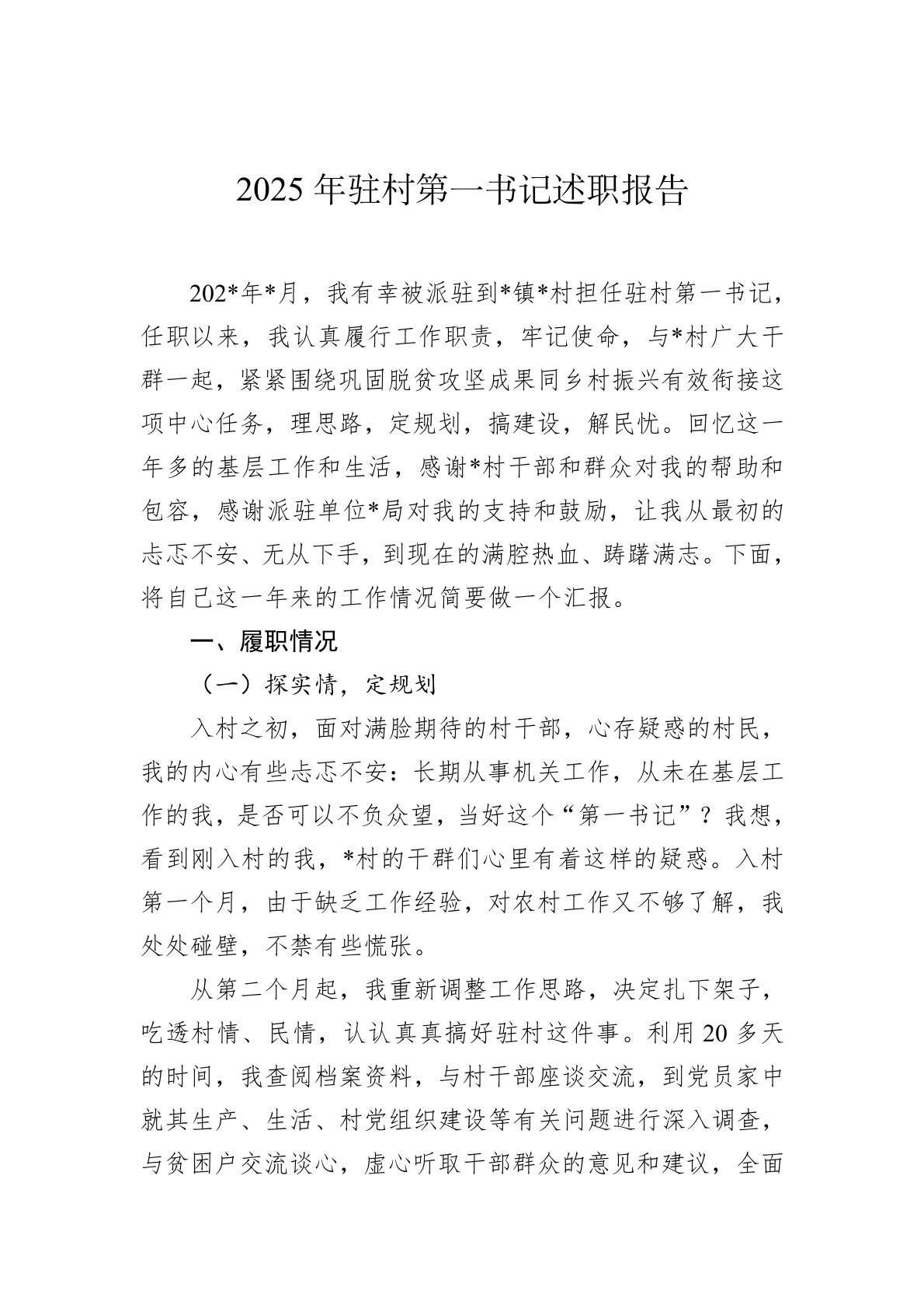 2025年驻村第一书记述职报告