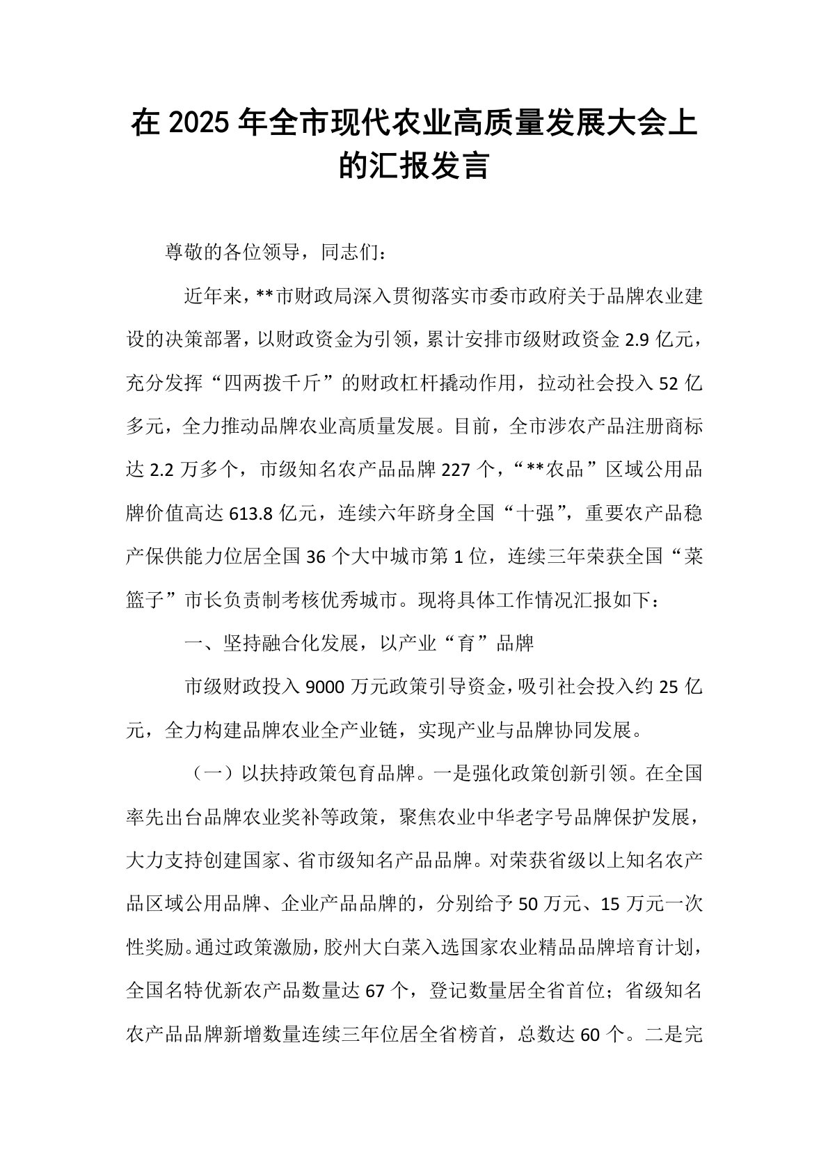 在2025年全市现代农业高质量发展大会上的汇报发言 (1)