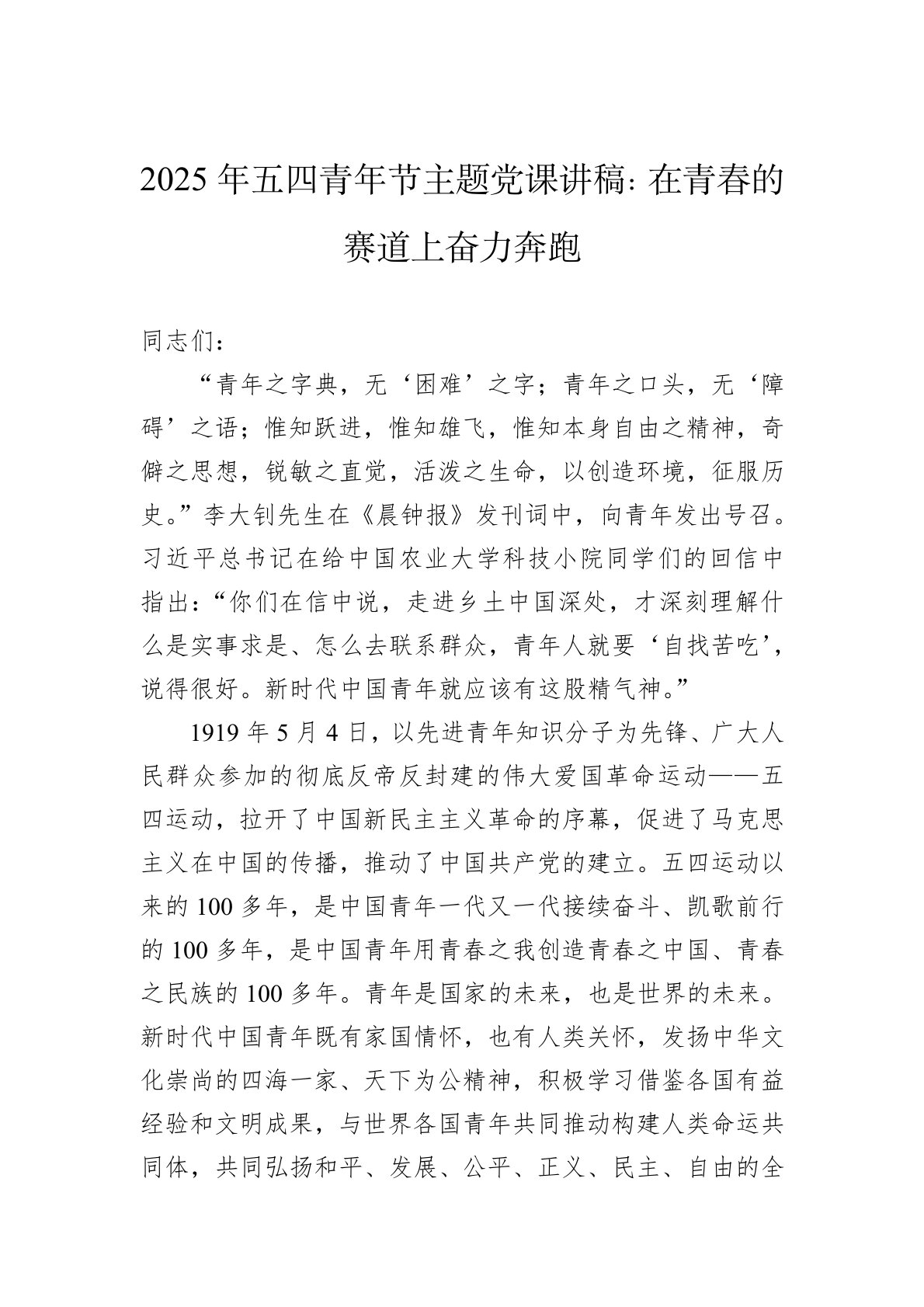 2025年五四青年节主题党课讲稿:在青春的赛道上奋力奔跑