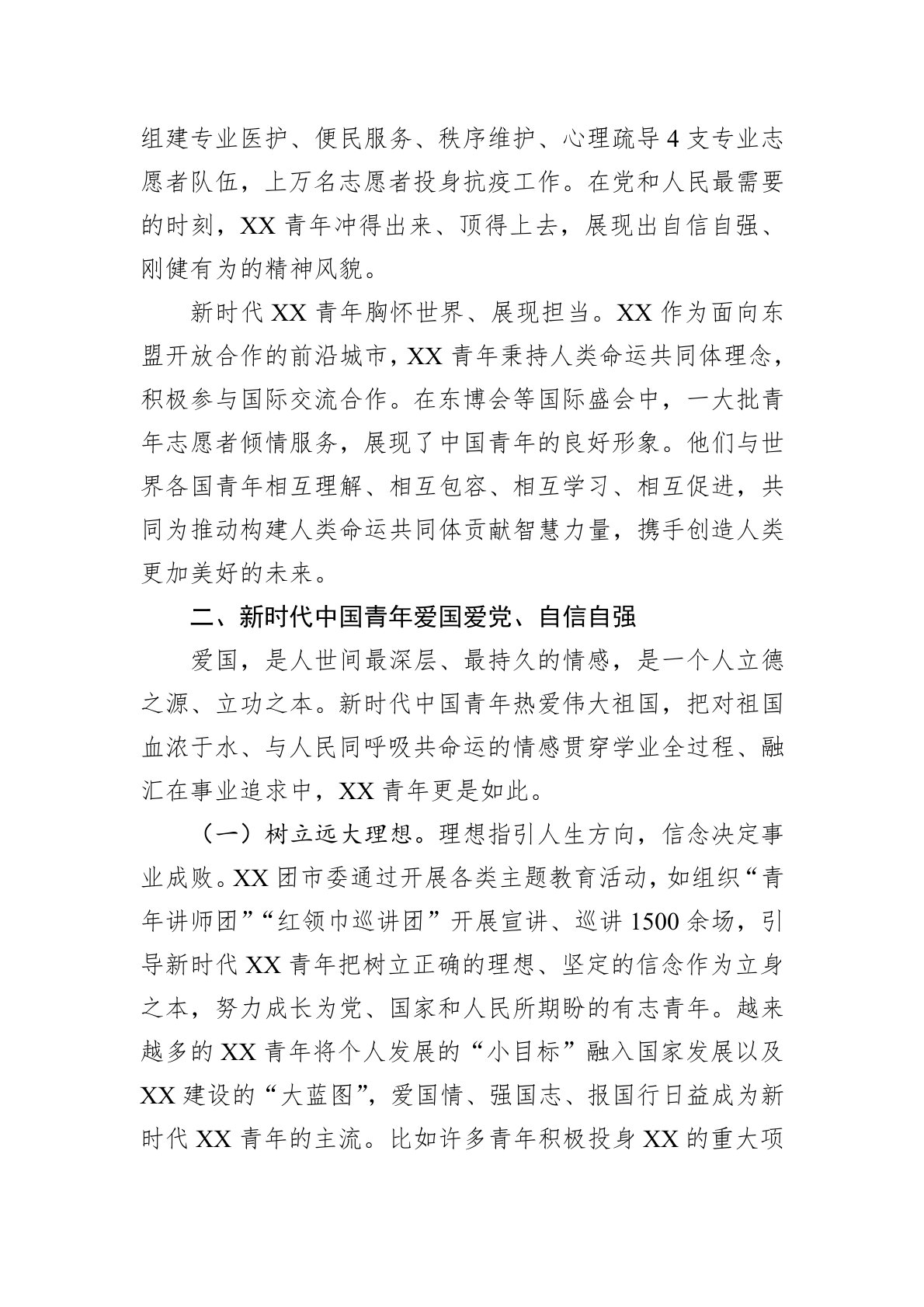 同志们:“青年之字典,无‘困难’之字;青年之口头,无‘障碍’之语;惟知跃进,惟知雄飞,惟知本身自由之精神,奇僻之思想,锐敏之直觉,活泼之生命,以创造环境,征服历史。”李大钊先生在《晨钟报》发刊词中,向青年发出号召。习近平总书记在给中国农业大学科技小院同学们的回信中指出:“你们在信中说,走进乡土中国深处,才深刻理解什么是实事求是、怎么去联系群众,青年人就要‘自找苦吃’,说得很好。新时代中国青年就应该有这股精气神。”1919年5月4日,以先进青年知识分子为先锋、广大人民群众参加的彻底反帝反封建的伟大爱国革命运动——五四运动,拉开了中国新民主主义革命的序幕,促进了马克思主义在中国的传播,推动了中国共...