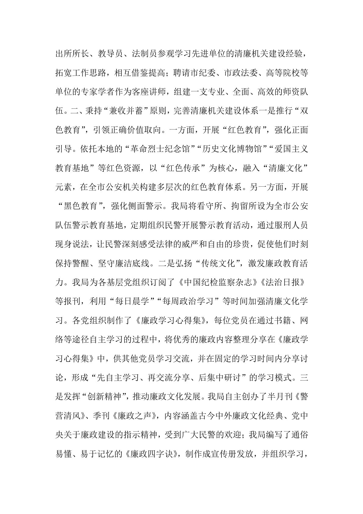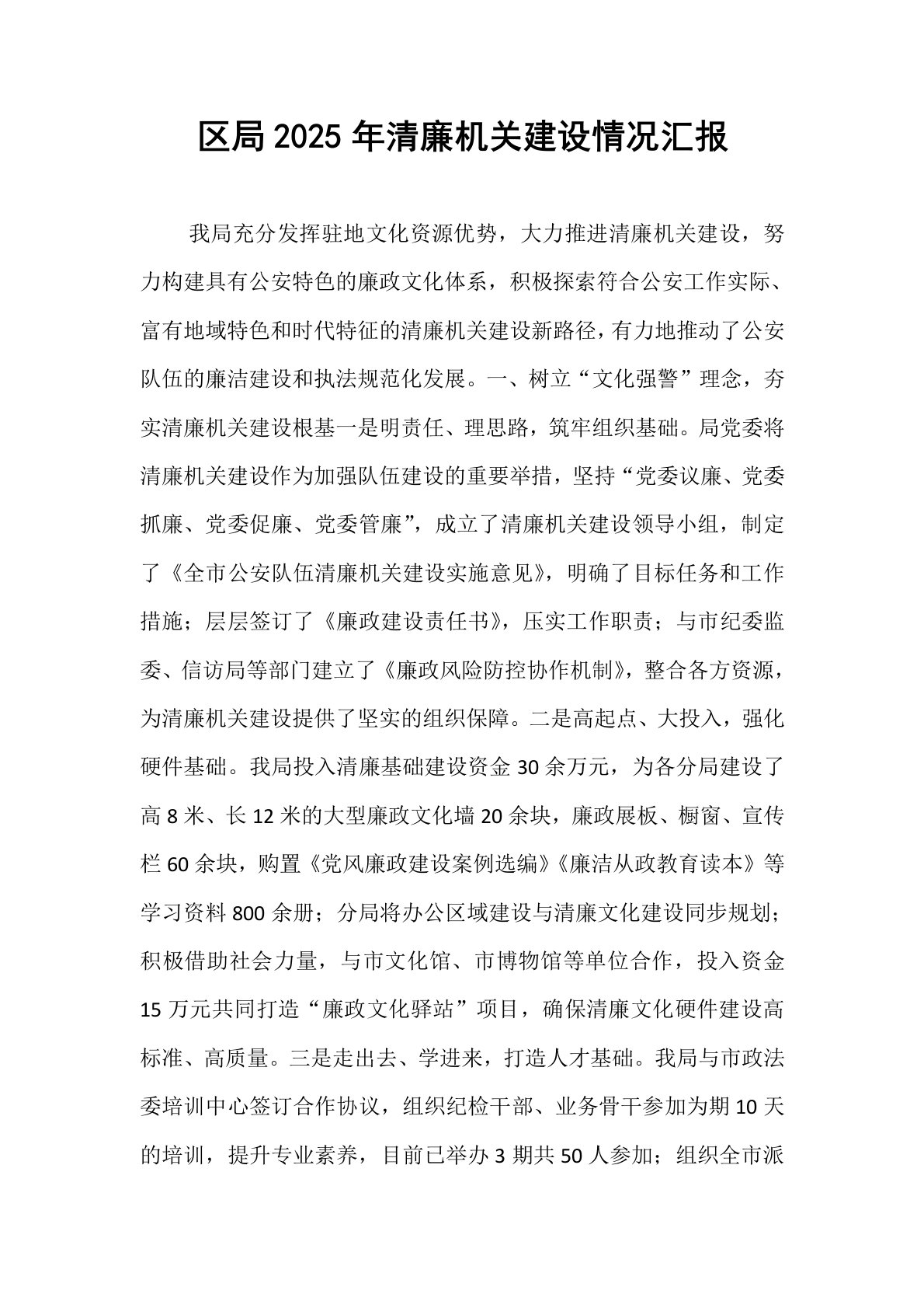 区局2025年清廉机关建设情况汇报 我局充分发挥驻地文化资源优势,大力推进清廉机关建设,努力构建具有公安特色的廉政文化体系,积极探索符合公安工作实际、富有地域特色和时代特征的清廉机关建设新路径,有力地推动了公安队伍的廉洁建设和执法规范化发展。一、树立“文化强警”理念,夯实清廉机关建设根基一是明责任、理思路,筑牢组织基础。局党委将清廉机关建设作为加强队伍建设的重要举措,坚持“党委议廉、党委抓廉、党委促廉、党委管廉”,成立了清廉机关建设领导小组,制定了《全市公安队伍清廉机关建设实施意见》,明确了目标任务和工作措施;层层签订了《廉政建设责任书》,压实工作职责;与市纪委监委、信访局等部门建立了《廉政风...