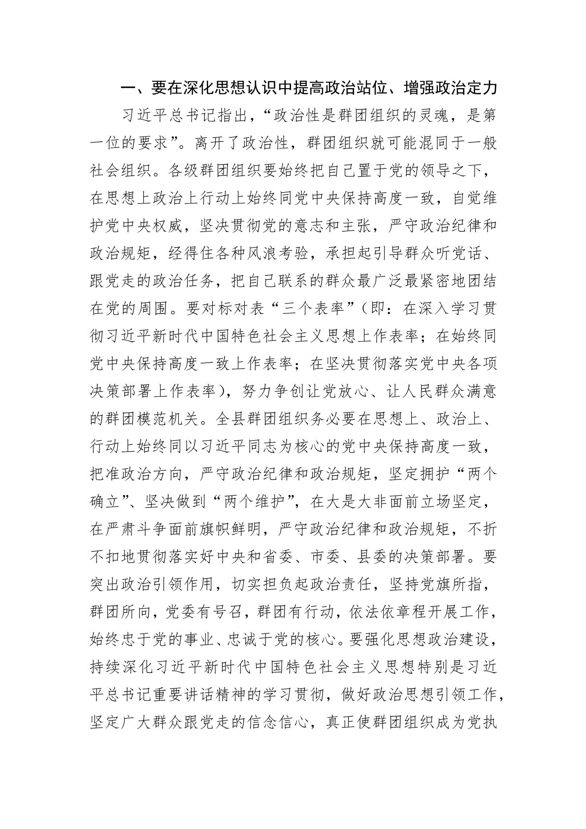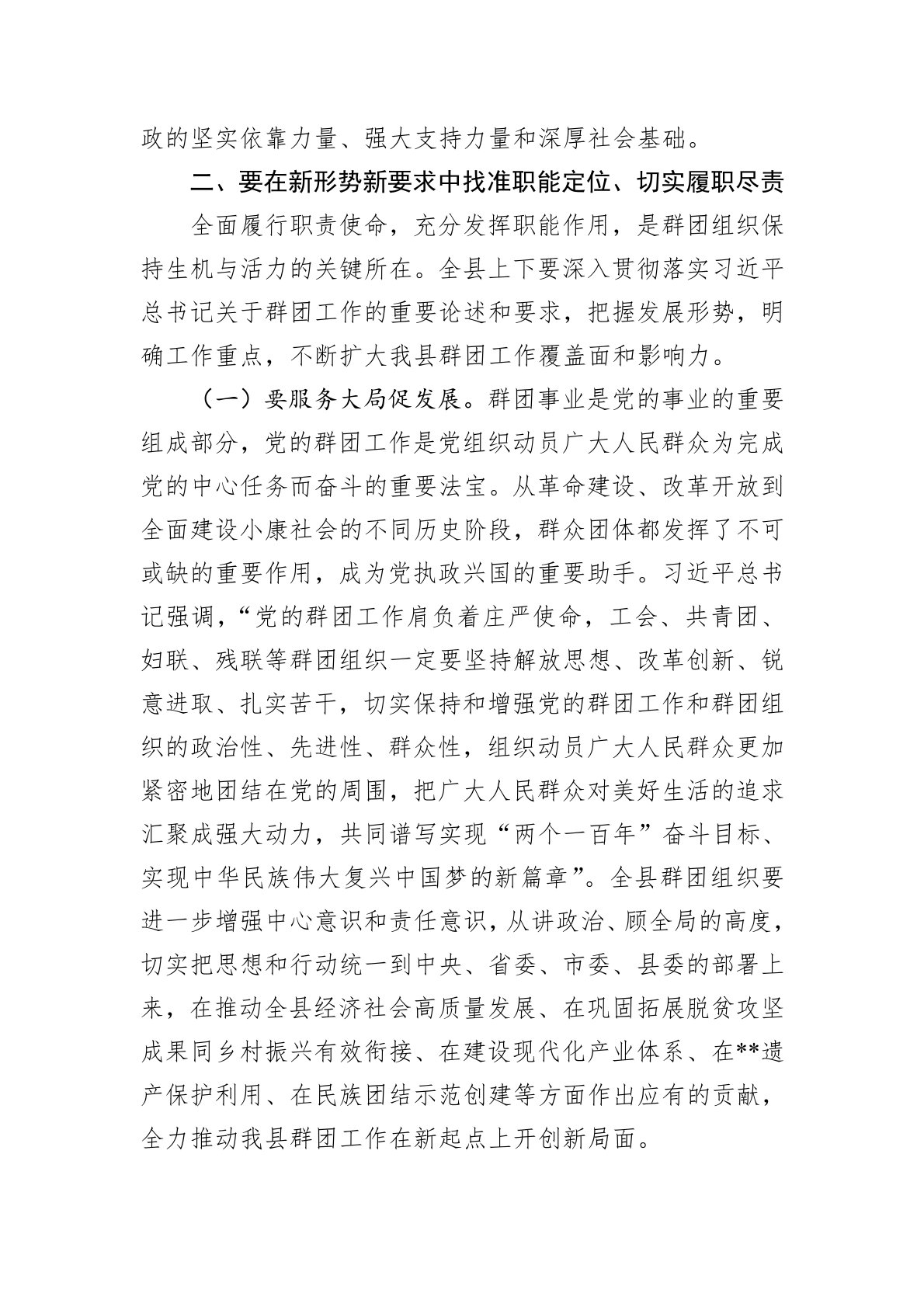 在全县群团工作会议上的讲话