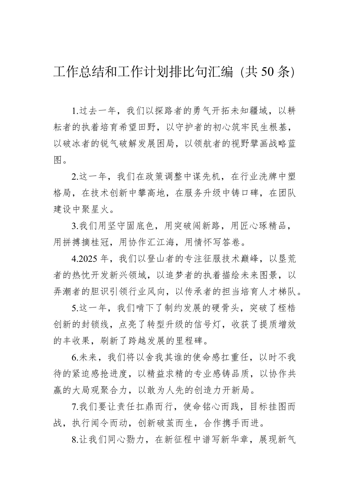 工作总结和工作计划排比句汇编(共50条)